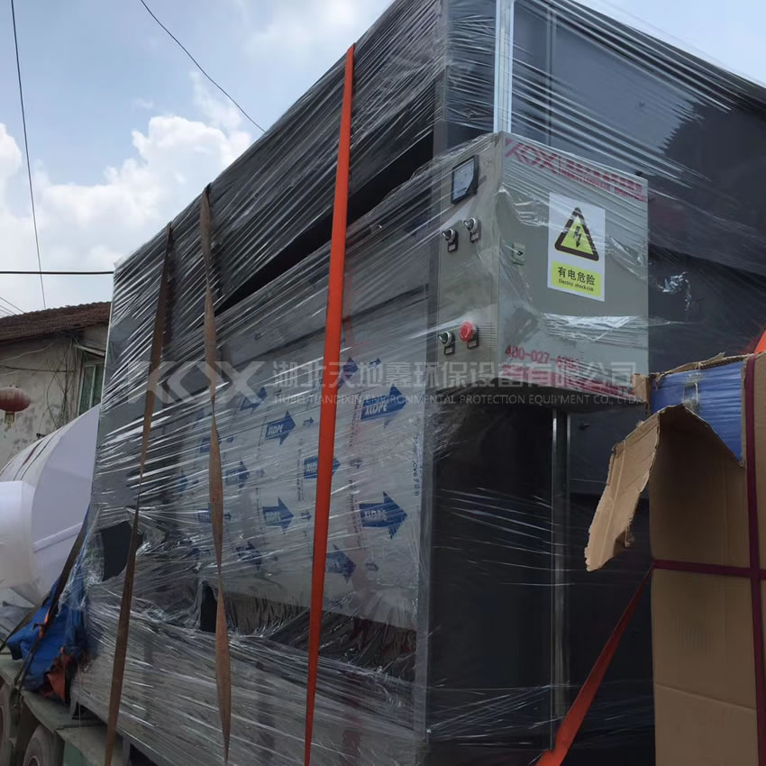 1、采用前生物酶噴淋洗滌塔預處理+后光催化劑(催化)氧化過濾系統。廢氣經管道收集后進入新野生物酶洗滌塔進行噴淋洗滌,具有一定的物理溶解和掩蔽作用。廢氣經噴淋洗滌塔處理后進入光催化劑(催化)氧化過濾系統,產生大量高能離子試劑的活性基團與活性游離基團發生化學反應,分解成二氧化碳、水等無害氣體。目前,該方案處理效率高,能有效去除粉塵、油漆和苯、甲苯、二甲苯、丁酮、醛等添加劑。